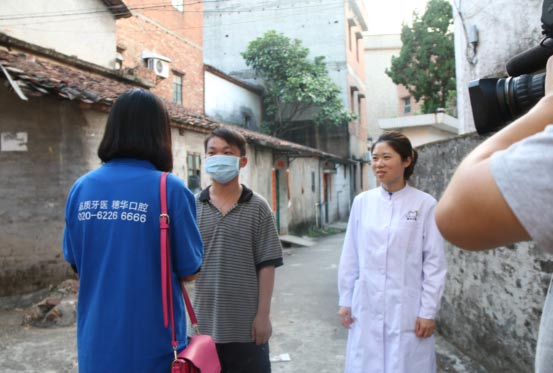 穗华口腔医院医生及工作人员跟随南方电视台今日一线记者正往吴正新家中走去。