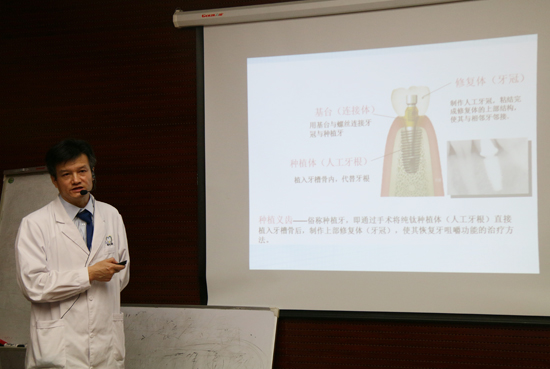 2016年5月15日上午9:30,穗华口腔医院举办“好牙好口福“种植牙全民公益系列讲堂第005期圆满落幕。穗华口腔医院种植科主任冯智强为广大缺牙者解疑释惑,让缺牙者更深入地了解种植牙,让缺牙者拥有好牙好口福。