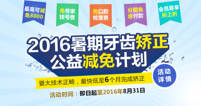 正值暑期和毕业季,学子们即将面临人生中重要的转折点,穗华口腔医院“微笑广州·2016暑期牙齿矫正公益减免计划”旨在:为因牙齿畸形而备受困扰的师生提供“微笑广州”爱牙基金专项补贴,以助师生实现自信蜕变,以全新的形象迎接未来,实现自己的人生目标。即日起至2016年8月31日,师生凭有效证明(学生证、教师证、准考证、毕业证等相关证件),可享受以下正畸公益减免计划: