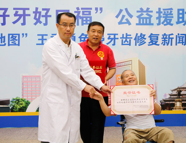 曾经因举报他人被打掉牙齿的“扫黄地图”王秀勇,如今获得免费牙齿修复的援助,这是记者在穗华口腔医院“关爱好人”穗华口腔工作站获悉。7月26日,“关爱好人”穗华口腔工作站于穗华口腔医院正式启动“好人好梦想·好牙好口福”公益援助计划。