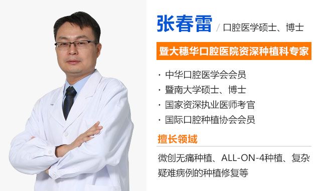 张春雷博士已从医近20年,2000年本科毕业于武汉大学口腔医学院,2005年暨南大学硕士毕业,目前为暨南大学口腔医学博士研究生。从事临床微创种植十余年,擅长微创拔牙、微创种植修复、复杂疑难病例的种植修复等,尤其是各种复杂疑难病例种植,种植病例数千例。同时,还被当选为国家资深执业医师考官,多次参加国内外种植学会议,主持省校级课题,发表核心文章十余篇。