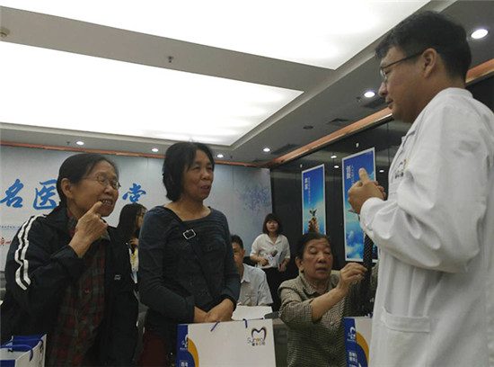 种植公益讲堂上,听众向张春雷博士咨询口腔问题