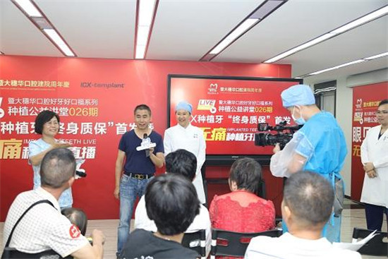 在现场人们开始围着黄叔了解情况,据黄叔介绍自己家在穗华口腔荔湾院区的的附近,从小就开始烂牙,实在没有办法才来种牙的,他没有想到自己种植牙的过程太快了,20多分钟就种好了三颗牙,自己走出手术室竟然没有一点感觉,听人们讲种完牙后,要痛上两三天的,连家人问他怎么回事他都讲不清楚,根本没有体会不到一点点的痛,现在过去24小时了一点都没有痛的感觉,医生开的药他也没有吃一颗。听说今天穗华口腔荔湾院区现场直播种植牙,一定带着老伴和孙子孙女一起来看看,回去给家人讲讲是怎么回事。