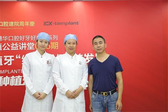 手术从开始到结束不过10分钟左右,大家一边看着直播一边问着手术的效果,这时坐在第一排的黄叔坐不住了,他站起来说:“我是昨天在这儿种的三颗牙,稀里糊涂就种完了牙,一点都不痛,真的,没有感觉到痛就种完了牙,我今天来就是想看一看种植牙的过程是怎么回事?当时就像电影里的猪八戒吃‘人参果’,没有尝到味道就没有了!”