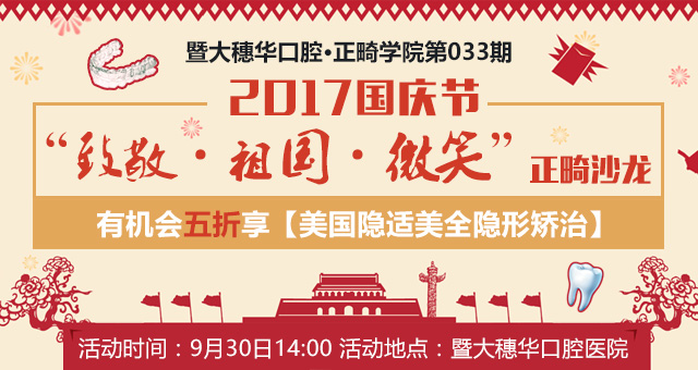 为了帮助牙齿畸形患者重拾健康和美丽,穗华口腔医院在9月全国爱牙月,推出以下针对牙齿畸形矫治的重大好礼:
