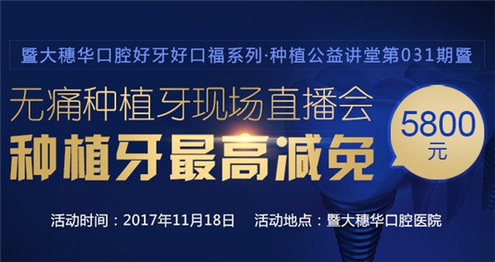为了让市民进一步了解种植牙,消除缺牙市民对种植牙的恐惧。11月18日,穗华口腔医院举办好牙好口福系列·种植公益讲堂第031期暨无痛种植牙现场直播会,专家现场直播讲解种植牙,免费听课还有机会领大奖!