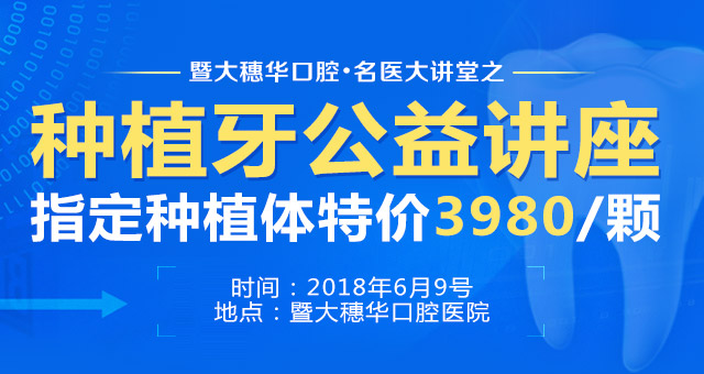 为了帮助缺牙患者重获好口福,与广大市民共享穗华口腔医院成立三周年的喜悦,将举行穗华口腔医院•名医大讲堂之种植牙公益讲座。届时将邀请资深种植专家现场为大家针对缺牙、种牙以及种牙案例分析进行深入详尽的讲解,面对面交流种牙难题,带来一场别开生面的种植牙公益讲座。