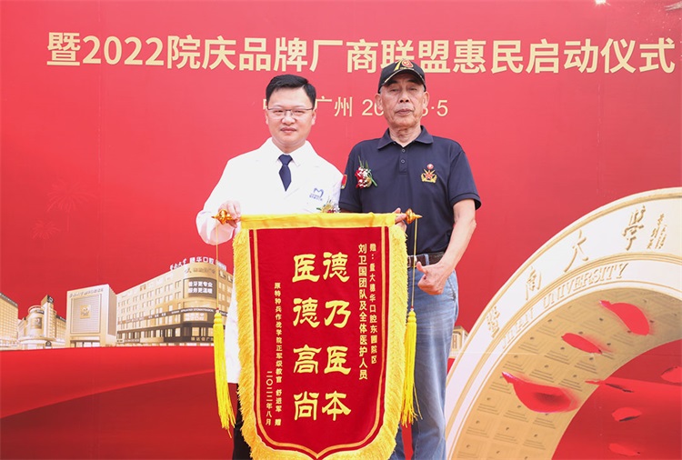 在经过刘卫国院长的精心治疗后,舒进军教授重获好牙。现在他见到刘卫国院长便不停称赞:“刘院长的技术真的太高超了,种植牙太好了,现在自己吃好喝好,营养充足,浑身上下都有使不完的力气。”为了向刘卫国院长及医护团队道谢,舒进军教授专程在穗华口腔医院第九家分院东圃院区开诊之际送上致谢的锦旗,这面锦旗的背后,不仅是一份祝福,更是对穗华口腔医院技术与服务的高度认可与肯定。