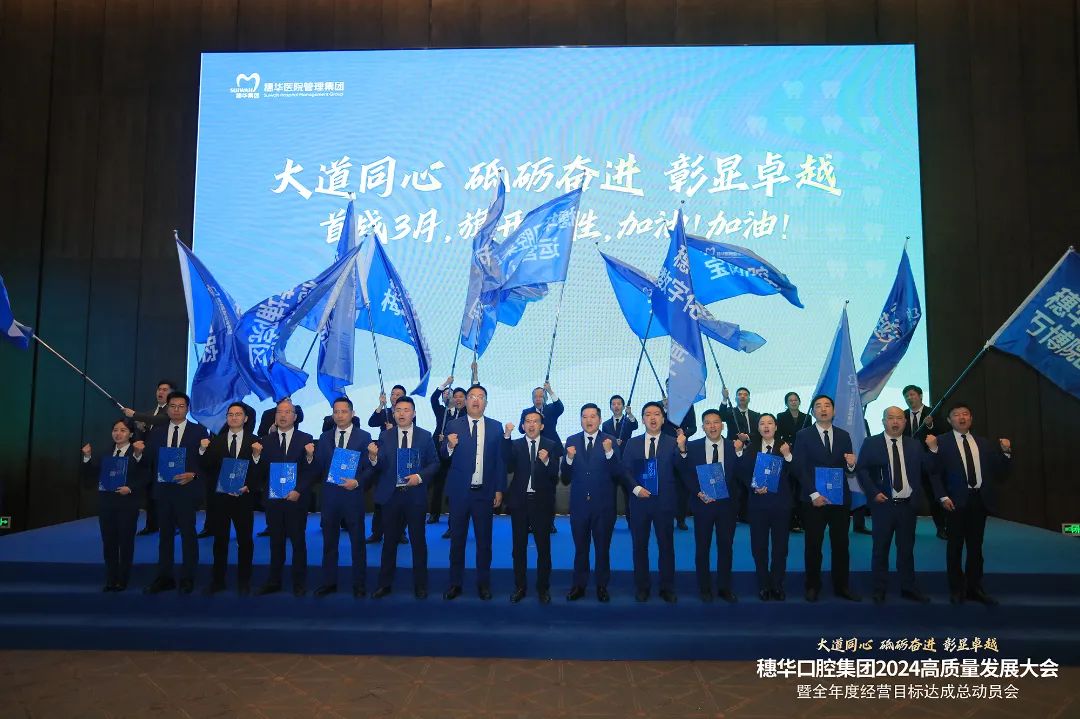 2 月 27 日,穗华医院管理集团成功举办了以 “大道同心 砥砺奋进 彰显卓越” 为主题的 2024 高质量发展大会暨全年度经营目标达成总动员会。穗华口腔集团 180 多位领导骨干齐聚一堂,吹响了集团扎实推进高质量发展的冲锋号,为全年保持良好发展态势描绘了奋进蓝图。