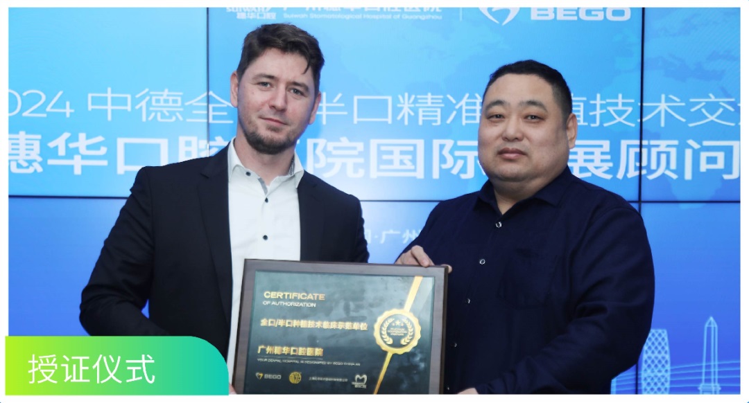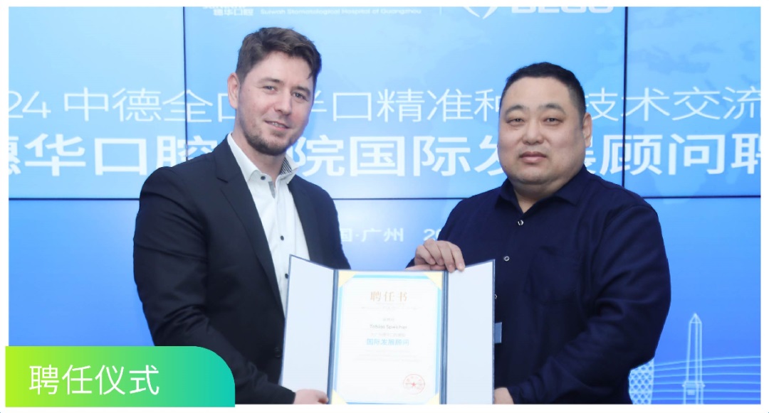 德国BEGO作为一家百年种植体老品牌,秉持对完美细节的不懈追求,不断以精湛工艺与创新设计创领时代,缔造牙科行业的不朽传奇。广州穗华口腔医院作为德国BEGO在中国的铂金合作伙伴,一直致力于引进国际先进的口腔技术和理念,提升医院医疗技术和诊疗服务水平。为加强中外合作交流,助推国际口腔种植技术前沿发展,我院特聘任德国BEGO亚太地区销售负责人Tobias Speicher作为广州穗华口腔医院国际发展顾问。